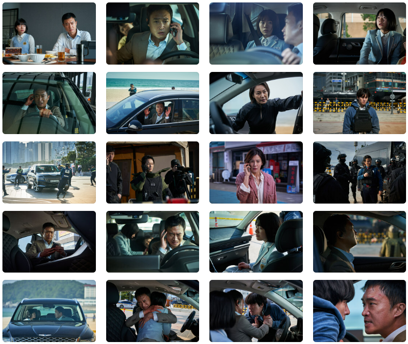 아침 요란한 아들의 총놀이에 꿈에서 깨어난 성규(조우진)는 다시 잠을 청하려 하지만 전화 오는 소리에 잠에서 깨어나고 중요한 미팅건으로 출근할 준비를 합니다. 출근준비를 마치고 딸 혜인(이재인)과 아들 민준(김태율)을 학교에 데려다주기 위해 차에 탑승을 하게 됩니다. 성규는 차에 타자마자 이상한 냄새를 느낀 듯 하지만 대수롭지 않게 여기고 딸 혜인도 차에 이상한 냄새가 난다고 말을 하지만 그 말도 대수롭지 않게 여기고 차를 출발시킵니다. 한참 달리던 차 안에서 의문의 핸드폰 소리를 듣게 되고 그 핸드폰 액정에는 발신번호표시제한이라는 표시와 함께 계속 울리고 성규는 핸드폰을 받게 됩니다. 의문의 남성은 차가 맘에 드냐며 말을 하지만 성규는 전화를 그냥 끊어버립니다. 한참 달리다 다시 전화가 울리게 되고 차에 폭탄이 설치돼 있다고 말합니다. 유쾌한 정보 감사합니다라고 말하고 다시 전화를 끊어버리고 성규는 주유소에 도착을 합니다. 내리려는 순간 또 다시 전화가 울리게 됩니다. 의문의 남성은 다시 폭탄에 대해 설명을 하고 성규는 의심스럽기만 합니다. 결국 주유소 직원에게 대리주유를 부탁하게 되고 차 의자 밑에 설치 되 있다고 하는 폭탄을 알게 됩니다. 성규는 서둘러 딸과 아들의 학교에 데려다주러 갑니다. 학교 앞까지 갔다가 후배 부지점장과 통화를 하다 같은 상황에 빠진 걸 알게 되고 후배 부지점장을 만나러 딸과 아들을 데리고 갑니다. 후배 부지점장은 아내와 실랑이 중이었습니다. 한참 실랑이 하다가 폭탄을 믿지 않는 후배 부지점장 아내는 결국 차에서 내리게 되고 후배 부지점장은 결국 아내와 차에서 생을 마감하게 되고 아들 민준은 폭탄에 의해 터진 차량 파편이 다리에 파고 들어가 다치게 됩니다. 아들이 다치자 성규는 의문의 남성에게 사정을 하게 되지만 범인은 천 원 한 장이라도 빠지면 병원 구경도 못 할 거라고 경고를 하며 다시 수십억의 돈을 요구합니다. 성규는 내릴 수 없는데 어떻게 돈을 전달해 주냐고 말하지만 가족끼리는 비밀 없어야 된다며 와이프에게 말할 것을 요구하게 됩니다. 성규는 와이프에게 전화를 걸어 사정을 얘기하고 와이프인 연수(김지호)는 범인이 말한 장소에 돈을 들고 갑니다. 연수와 같이 온 지인은 이상하게 여기고 신고를 하게 되고 아내인 연수는 범인이 말한 장소에서 범인을 잡지만 그냥 지나가는 사람이었습니다. 결국 의문의 남성이 말한 장소에 설치한 폭탄이 터지고 다행히 아내는 다치지 않았습니다. 그 시각 후배 부지점장의 사건을 조사하다가 이상하게 여긴 경찰이 범인으로 성규를 지목하게 되고 성규의 자동차는 수배가 내려지게 됩니다. 점점 감각이 없어지는 아들의 다리 때문에 점점 이성을 잃게 되고 수배가 내려진 성규의 차를 본 경찰이 점점 다가오자 다시 경찰과의 추격전이 시작됩니다. 성규는 한참을 달리다 결국 쫓아오는 경찰차들로 인해 바닷가 앞에 멈춰 서게 됩니다. 경찰에 둘러싸인 성규는 의문의 남성이 전하라는 말을 하며 경찰들이 오해할만한 말들을 전하게 됩니다. 결국 그 말들로 인해 경찰은 경찰특공대까지 불러 사건이 점점 커지게 되고 폭탄물 처리반 반팀장(진경)이 성규에게 접근해 물을 주는 척하며 무전기도 전해 줍니다. 무전기를 받은 성규는 무전을 통해 의문의 남성과 말하려 하지만 의문의 남성은 이미 무전기가 있는 것을 알아채고 무전기를 밖으로 버리라고 문자를 보내옵니다. 문자를 본 성규는 무전기를 밖으로 버리게 되고 협박당하고 있다는 걸 눈치챈 반팀장은 통신을 무력화시켜 다시 성규한테 접근하게 됩니다. 통신이 끊긴 걸 안 성규는 반팀장에게 사실대로 말하고 반팀장은 사실을 듣고 가서 폭탄물 처리하러 탐지견을 데리고 옵니다. 반팀장은 앞 좌석에서만 폭탄물이 설치 되 있다고 말하고 아들을 먼저 구조대에 보내고 딸을 차에서 내리게 하는데 딸 혜인은 주변에 총을 들고 있는 경찰들을 보고 앞좌석에 앉게 됩니다. 무력화된 통신 앞에 의문의 남성은 결국 성규의 동생이라고 속여 설득시키겠다고 하고 성규의 앞에 나서게 됩니다. 의문의 남성인 진우(지창욱)는 성규에게 다가가 다시 협박을 하게 되고 딸 혜인을 앞 좌석에서 내리게 하면서 돈을 구하면 약속장소가 어디인지 말해주겠다고 하고 혜인을 데리고 있겠다고 합니다. 성규는 선택지가 없어 다시 도심을 향해 전력질주를 하게 됩니다. 진우에게 다시 전화가 걸려오자 돈을 보냈다고 말하고 성규는 약속장소를 듣고 약속장소로 향합니다. 약속장소에서 만난 성규와 딸 혜인은 이 사건이 일어날 수밖에 없었던 사실에 대해 말을 하게 되고 성규의 옆에 진우가 타게 됩니다. 폭발 시간이 얼마 남지 않아 차를 끌고 바다로 들어갑니다.