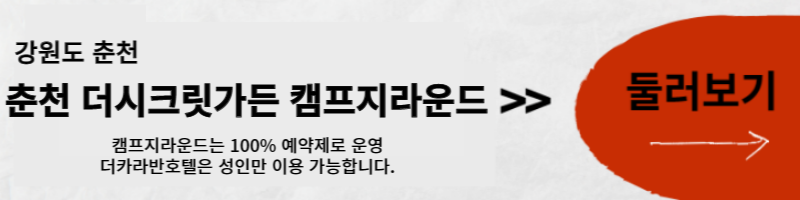 강원도 춘천 더시크릿가든 캠프지라운드는 강원도의 청정 자연 속에서 카라잔, 글램핑, 오토캠핑을 체험할 수 있는 곳입니다. 약 1500평의 넓은 천연 잔디 위에서 캠핑을 즐길 수 있어 더욱 매력적인 곳입니다. 이곳은 잡지나 화보에서 볼 수 있는 빈티지 카라반에서 하룻밤을 보낼 수 있는 더카라반호텔이 매력적인 곳입니다. 아기자기한 스캠프 카라반과 아날로그 감성의 에리바 카라반, 모던한 디자인의 프리덤 카라반 타입으로 다양하게 구성되어 있어 취향껏 예약 후 즐길 실 수 있습니다. 특히 프리미엄 바비큐 프로그램인 '캠프온스타일바비큐프로그램'을 예약해 캠핑장 내 소품들을 사용하여 원하는 대로 꾸며진 테이블 위에서 프라이빗하게 특별한 바비큐 시간을 보내실 수도 있으니 함께 즐겨보시기 바랍니다.